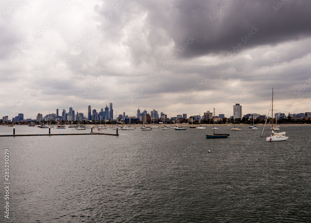 View of St Kilda and pleaseure yachts from St Kilda tourist pier, St Kilda, Melbourne, South Australia