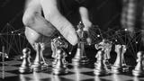 Business futuristic graphic icon,silver and golden chess board game.strategy ideas and connection concept in vintage color tone.