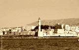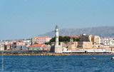 Chania, Crete, Greece. June 2019. The Egyptian Lighthouse dating from !6 Century. Renovated in 2005 and sits at the entrance to the Venetian Harbour, Chania