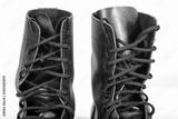 Black Leather combat boot or Army Boots on white.