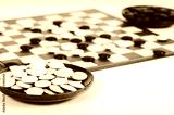 Board game Go and black and white bones. Go or wei-Chi ,asian board game.