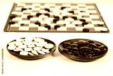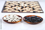 Board game Go and black and white bones. Go or wei-Chi ,asian board game.