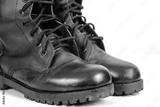 Black Leather combat boot or Army Boots on white.