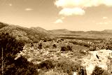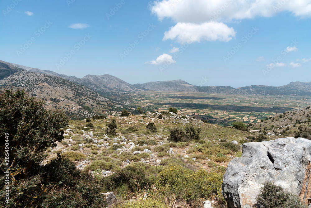 Crete, Greece, June 2019. A view of the Lasithi Plateau from above in the Lasithi Mountains of central Crete.