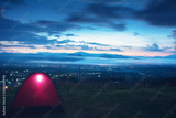 Outdoor camping tent among meadow on mountain during sunset at Yun Lai Viewpoint Pai town Mae Hong Son in Thailand. This is very popular for photographers and tourists.