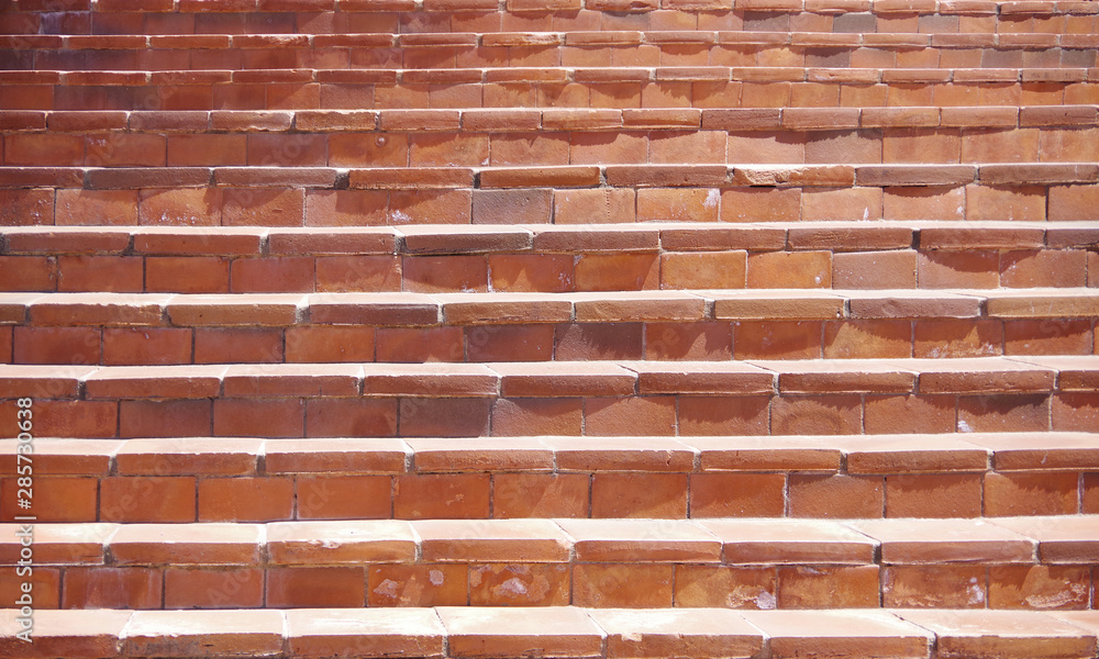 A close sectional full frame view of old red brick stairs