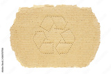Recycle symbpl on torn of cardboard, isolated on white background with clipping pathd.
