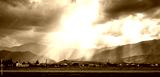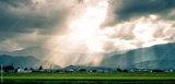 Beautiful rice paddy and mountains at sunset. Nagano Prefecture, Japan
