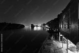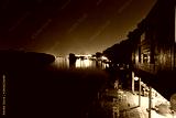Floating hostels and old town near Sava River at night in Belgrade, Serbia.