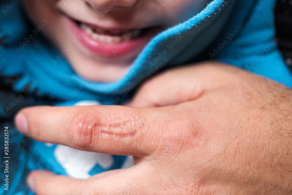 Trace of teeth bite on skin. Bad behavior of child