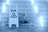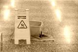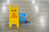 cleaning progress caution and wet floor sign in office, cleaning service concpet