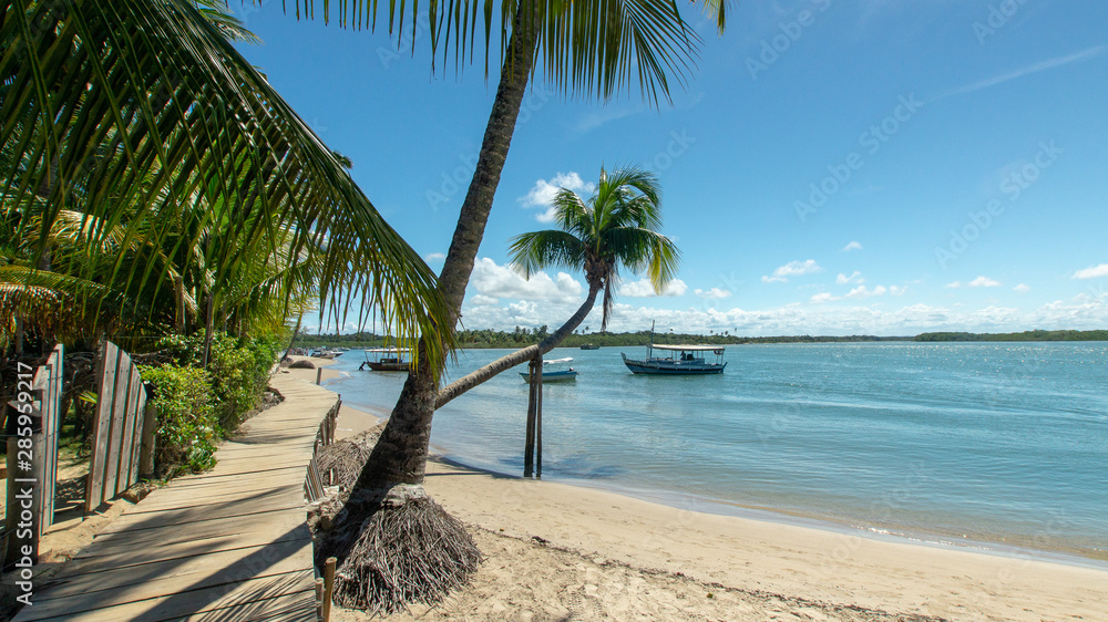 boat boca da barra beach at boipeba bahia brazil oct 18