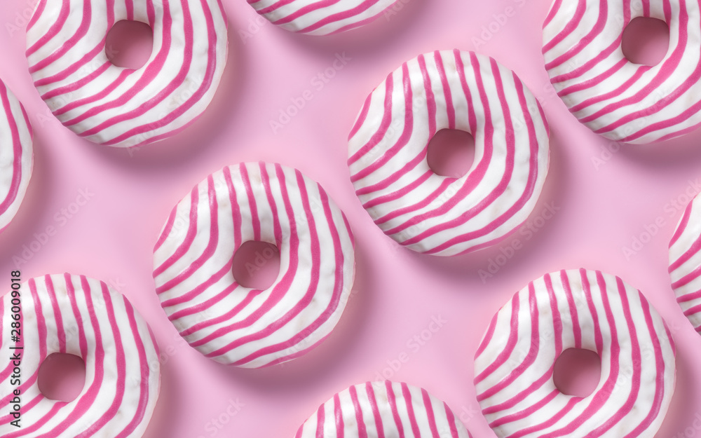 Set of donuts on pink pastel background, minimalism contemporary style