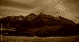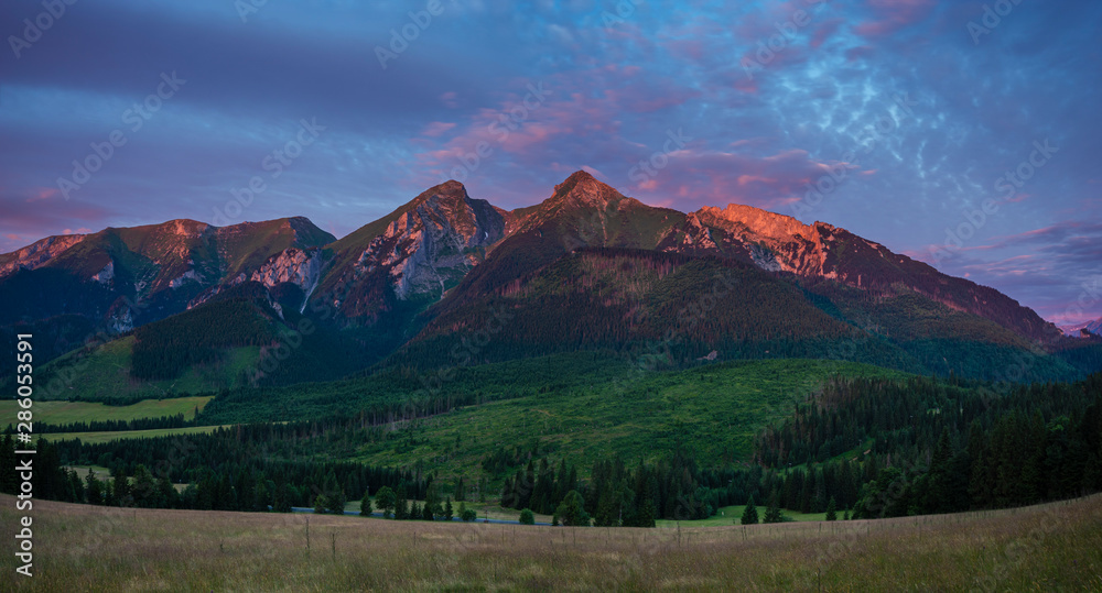 Panorama of mountains illuminated by the rising red sun-Tatra Mountains, Slovakia