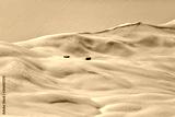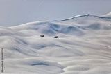 Huge amounts of snow and ski, snowboard lines from a crest at Megeve Region of French Alps on a sunny day at spring start.