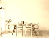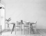 Dining room and kitchen copy space on white background, front view,3D rendering