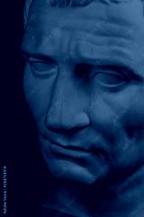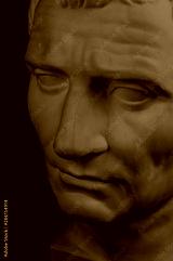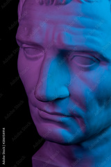 Gypsum copy of ancient statue Augustus head isolated on black background. Plaster sculpture man face.