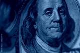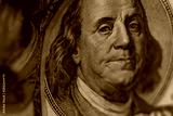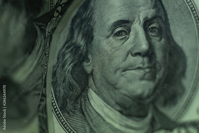 Close up Franklin's face on a one hundred dollar. American, US Dollars Cash Money background.