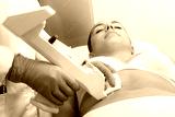 Therapist doing mesotherapy treatment on female tummy.
