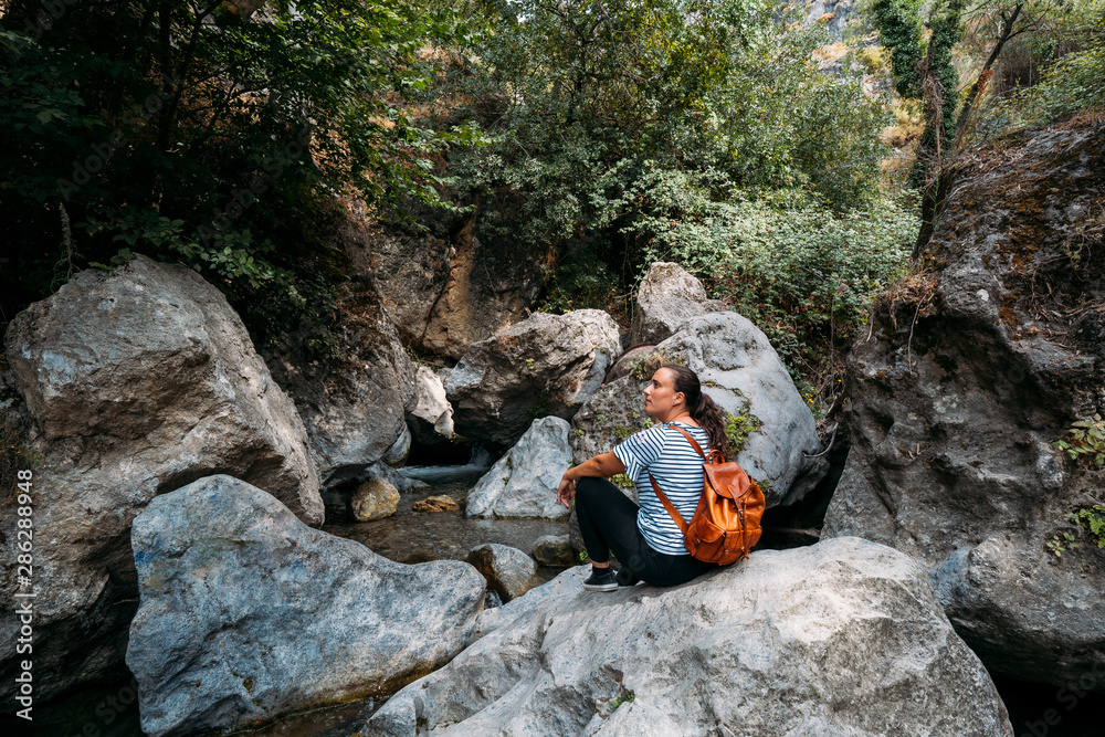 woman meditating relaxing alone Travel healthy Lifestyle concept lake and mountains sunny landscape on background outdoor