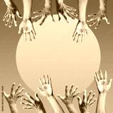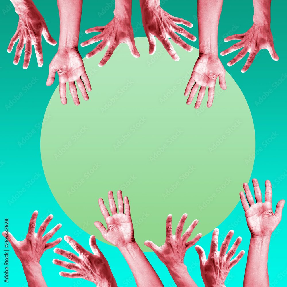 Modern conceptual art poster with a hands in a surrealism style. Contemporary art collage.