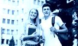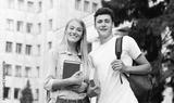Happy university students holding books and smiling to camera