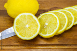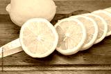 Fresh Fruit Yellow lemon with Half cut on wood for hot summer days and good for health