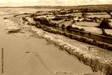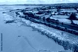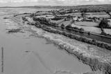Aerial drone view of abandoned ships on the banks of the River Severn at Purton in England