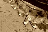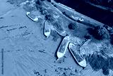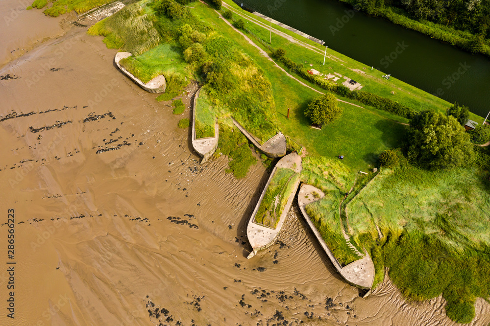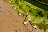 Aerial view of abandoned hulls of boats at the Purton Hulks (Ship Graveyard)