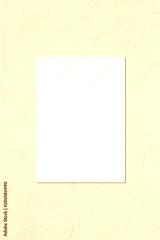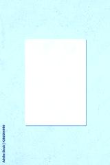 Empty white vertical rectangle poster mockup with soft shadow lying on neutral light grey concrete background. Flat lay, top view