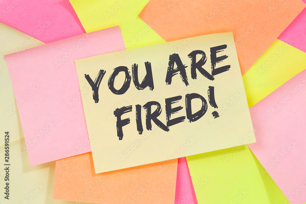 You are fired employee losing jobs, job working unemployed business concept note paper
