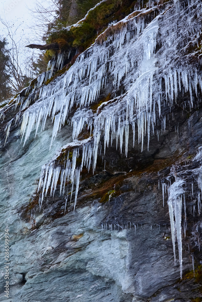 Nice big icicles in the mountains, close up.