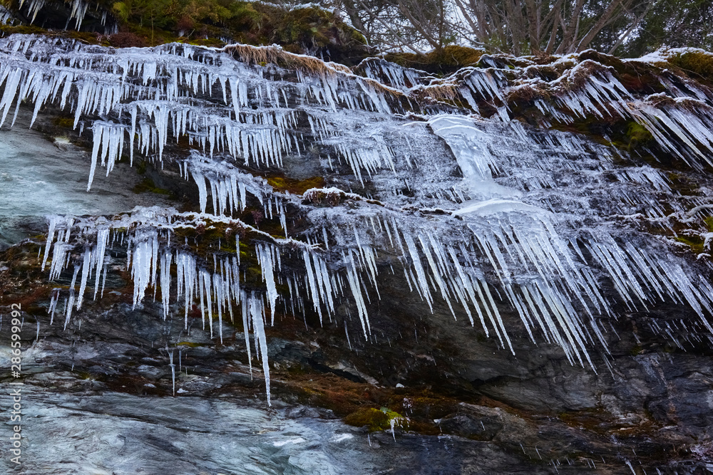 Nice big icicles in the mountains, close up.