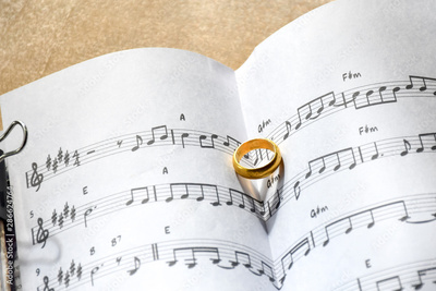 Symbol of love, Ring on the song books music notes.