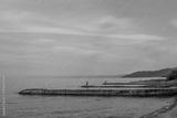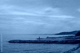 Lake Baikal. On breakwaters, fishermen catch fish with fishing rods.