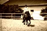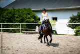 Horse riding. The woman rider rides a horse.