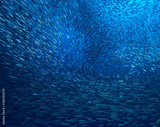 scad jamb under water / sea ecosystem, large school of fish on a blue background, abstract fish alive
