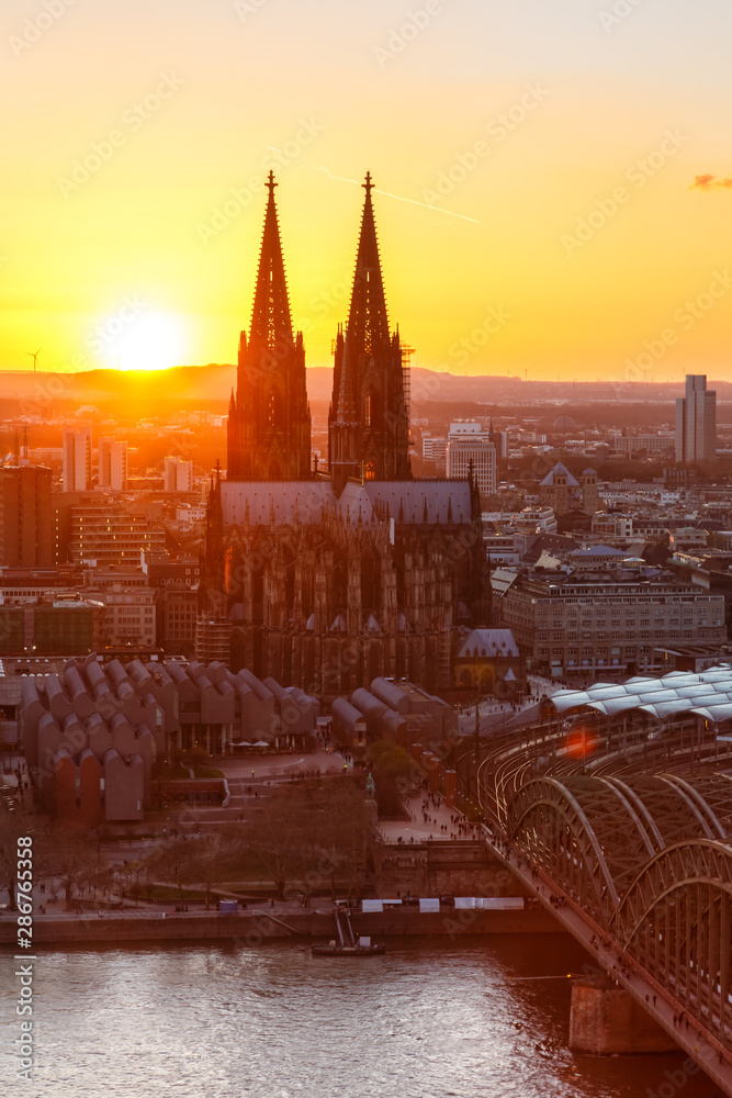 Cologne Cathedral church portrait format Germany skyline city town sunset bridge