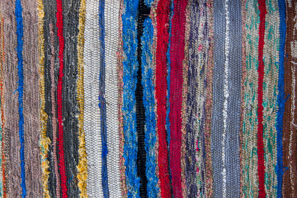 Traditional Ukrainian ornament with carpet, self-sewed pattern on linen fabric, multicolored, variegated stripes, backgrounds and textures 1