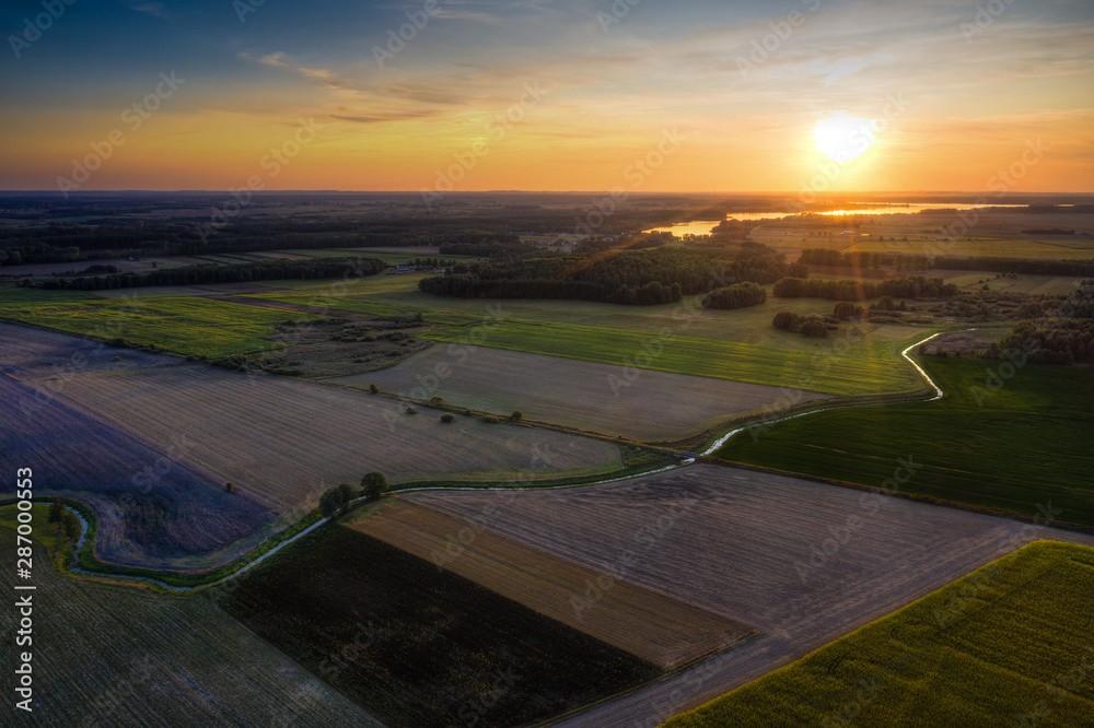 Aerial view of a country agricultural landscape. Masuria, Poland.