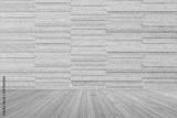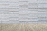 Modern marble tile wall pattern background in light grey color with wooden floor in sepia brown tone
