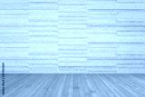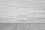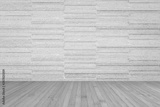Modern marble tile wall pattern textured background in light white color with wooden floor in grey