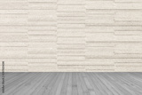 Granite tile wall in light cream beige brown color with wooden floor in dark grey