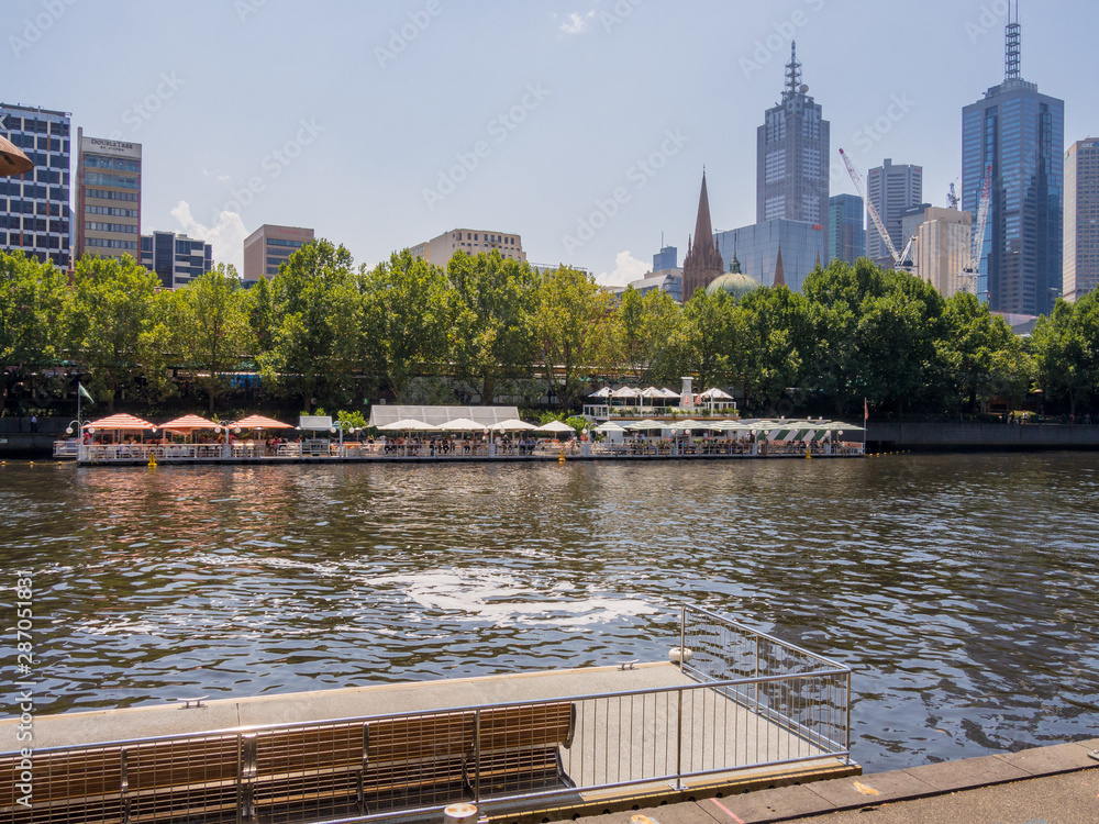 The amazing Melbourne skyline from the shores of the river Yarra, Melbourne, South Australia