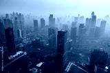 Foggy Jakarta cityscape at morning time