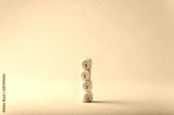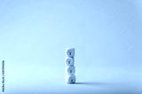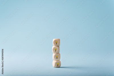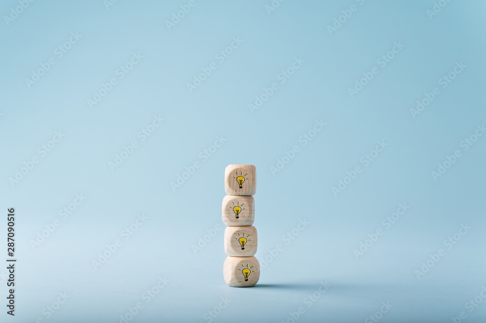 Four wooden dices with light bulb drawn on them