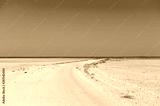 An overview of the empty space of the Etosha salt pan, Ethosha National Park, Namibia.