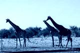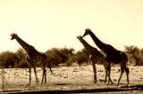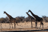 Tree Angolan Giraffes - Giraffa giraffa angolensis standing near a waterhole in Etosha national park, Namibia.
