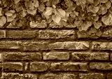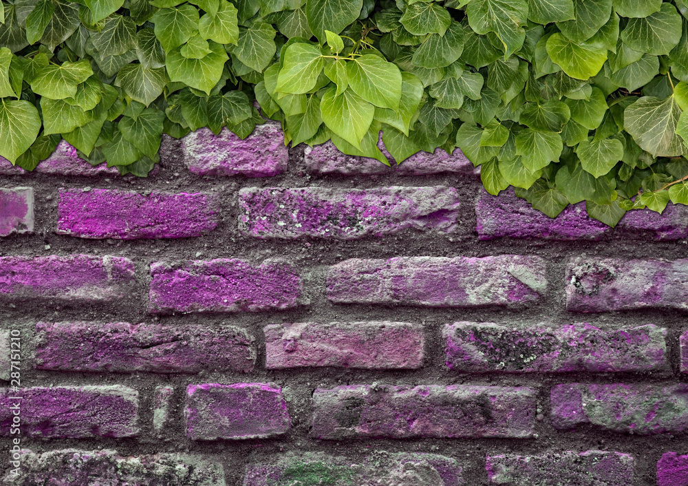 Old Texture brick wall, background, detailed pattern covered in ivy