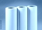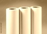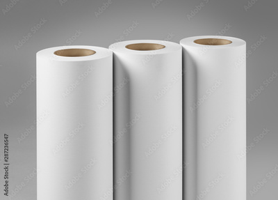 Blank white paper rolls isolated on gray background. Mockup paper for magazines, catalogs or newspapers isolated on gray backdrop, Printing house theme or wrapping paper for presents
